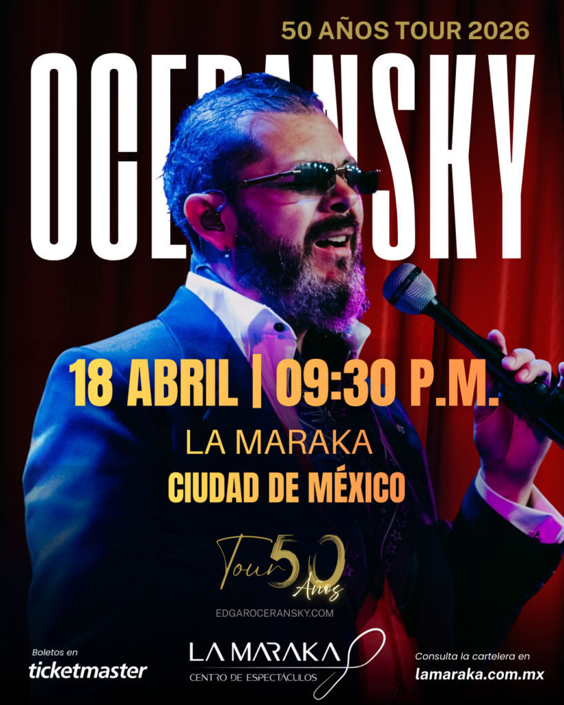 Edgar Oceransky llega a La Maraka con su «50 Años Tour». Una noche íntima y espectacular en la Ciudad de México para corear todos sus éxitos. ¡No te quedes fuera de esta velada histórica!