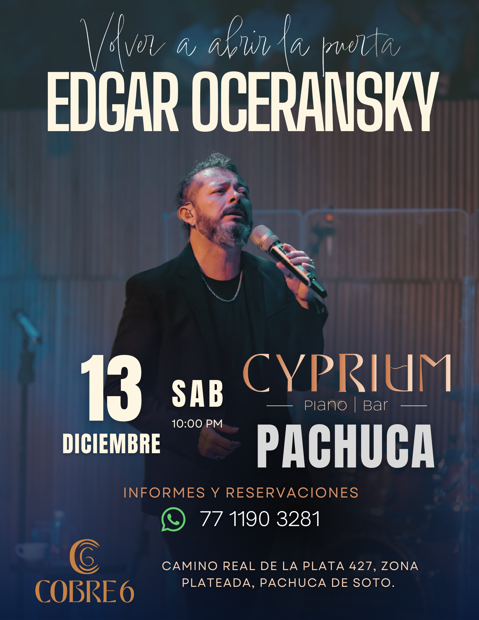 ¿Estás listo para volver a abrir la puerta al romanticismo? Este sábado 13 de diciembre, vive una noche inolvidable con la voz y el sentimiento de Edgar Oceransky.